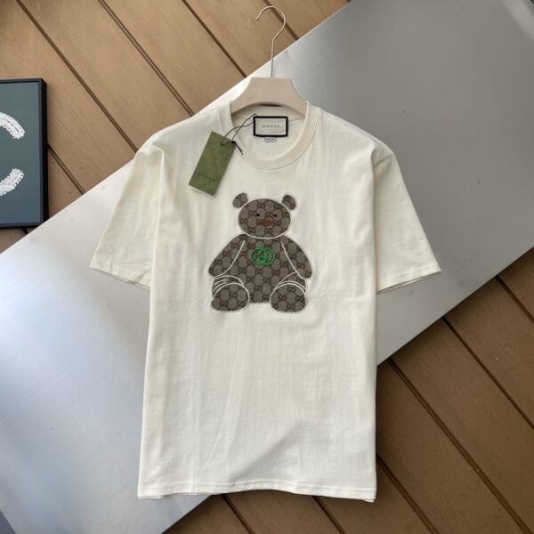تيشيرت غوتشي للزوجين بأكمام قصيرة مطرز برقعة دب G مزدوجة