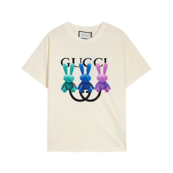 تيشيرت قطني بأكمام قصيرة ومطبوع عليه شعار غوتشي أرنب.