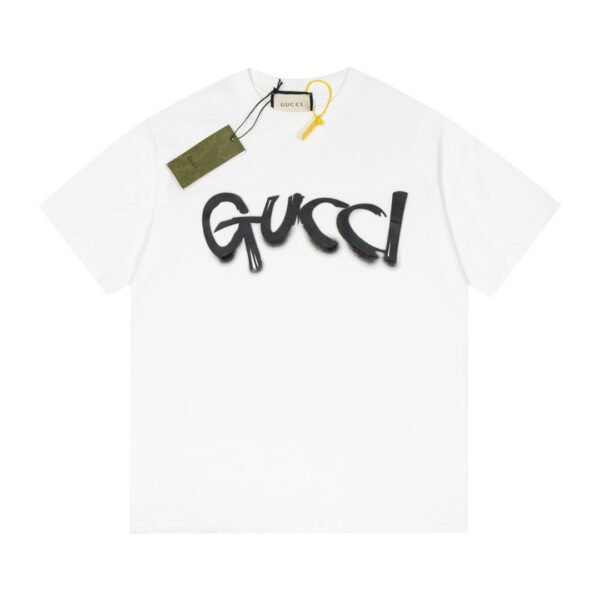 تيشيرت غوتشي الكلاسيكي بأكمام قصيرة وطبعة حروف جرافيتي.