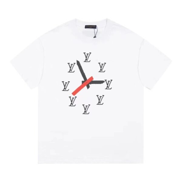 تيشيرت لويس فويتون جاكار بنقشة ساعة وأكمام قصيرة ورقبة دائرية.