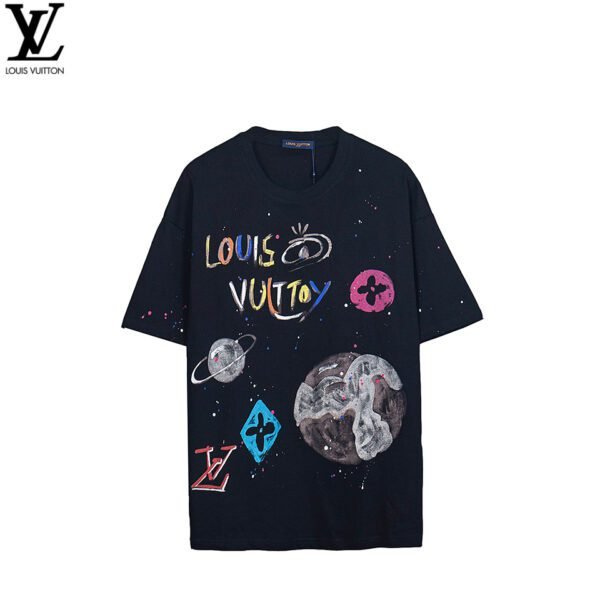 تيشيرت لويس فويتون جرافيتي بأكمام قصيرة وطبعة رذاذ الطلاء