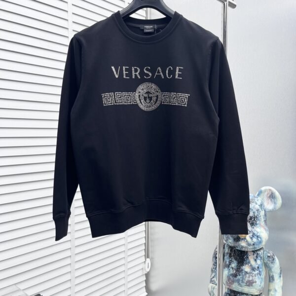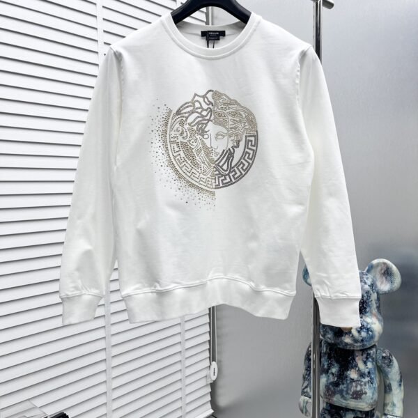 سويت شيرت فيرساتشي خريف وشتاء جديد، بياقة دائرية مرصعة بالألماس