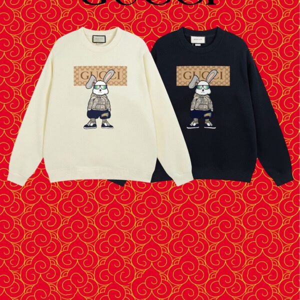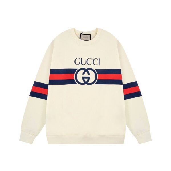 سويت شيرت غوتشي مطبوع عليه شعار غوتشي كبير على الصدر.