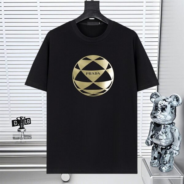 قميص برادا الرجالي الجديد المحبوك بأكمام قصيرة وياقة دائرية