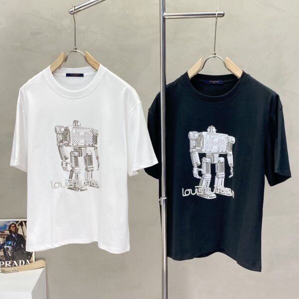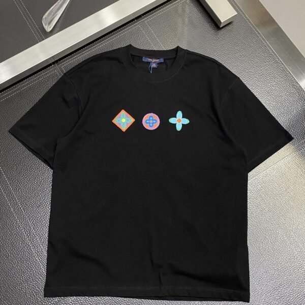 قميص لويس فويتون بياقة دائرية وأكمام قصيرة وشعار كلب مزدوج