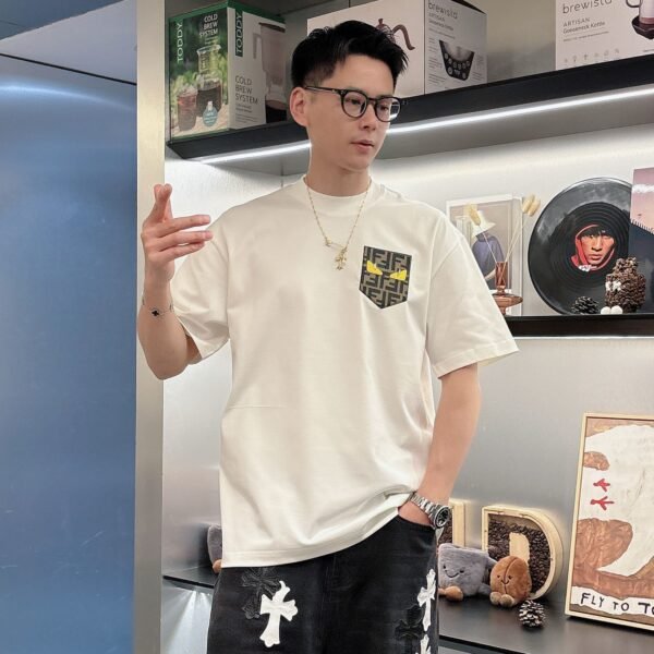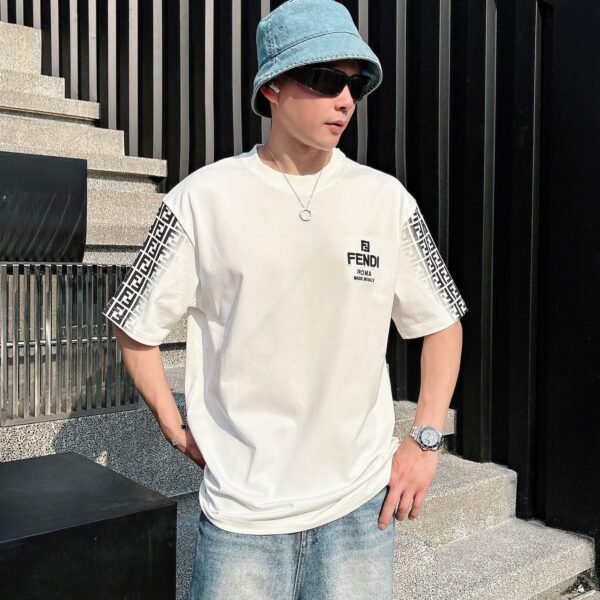 تيشيرت فندي الجديد للربيع والصيف بأكمام قصيرة ورقبة دائرية
