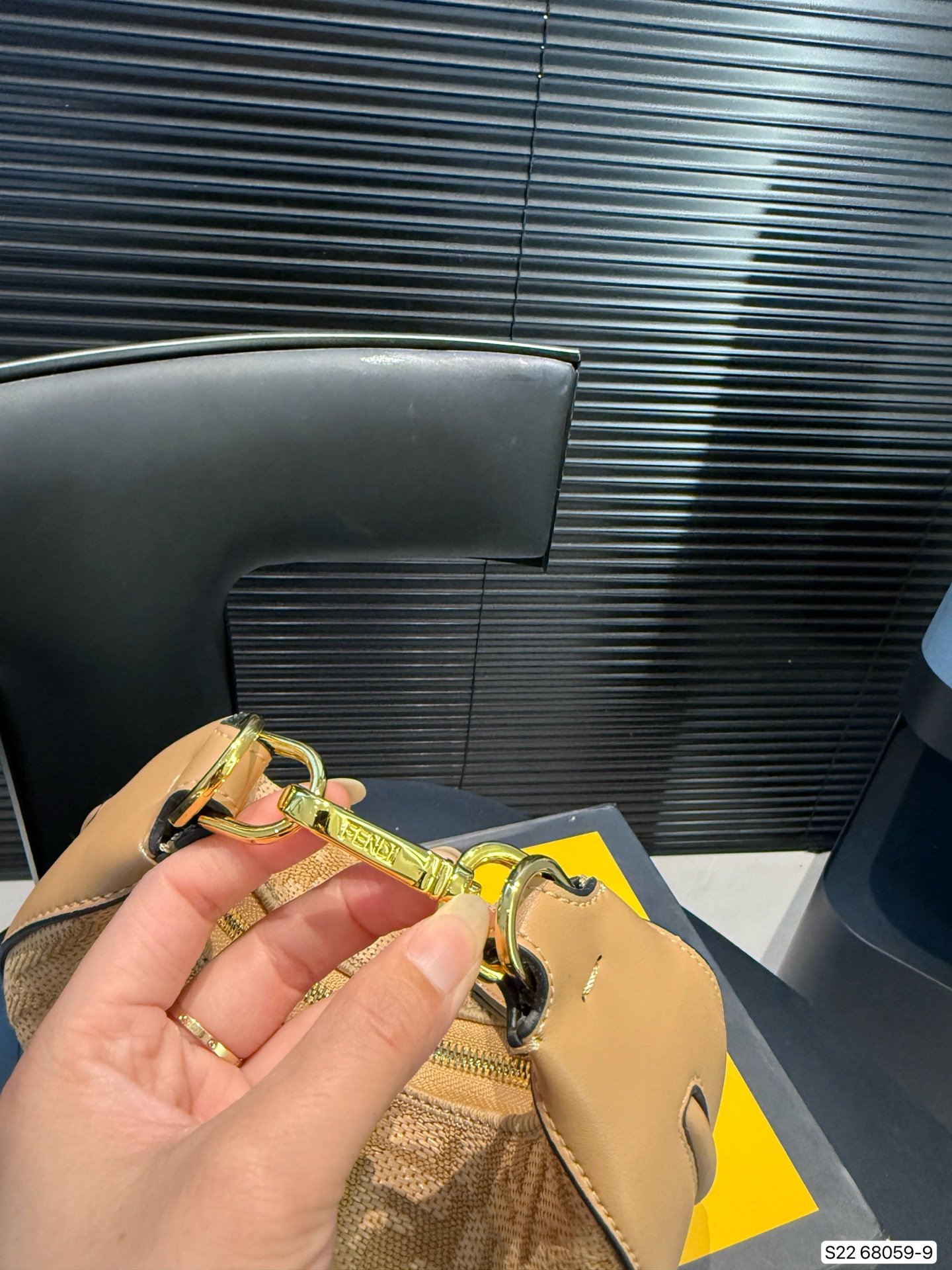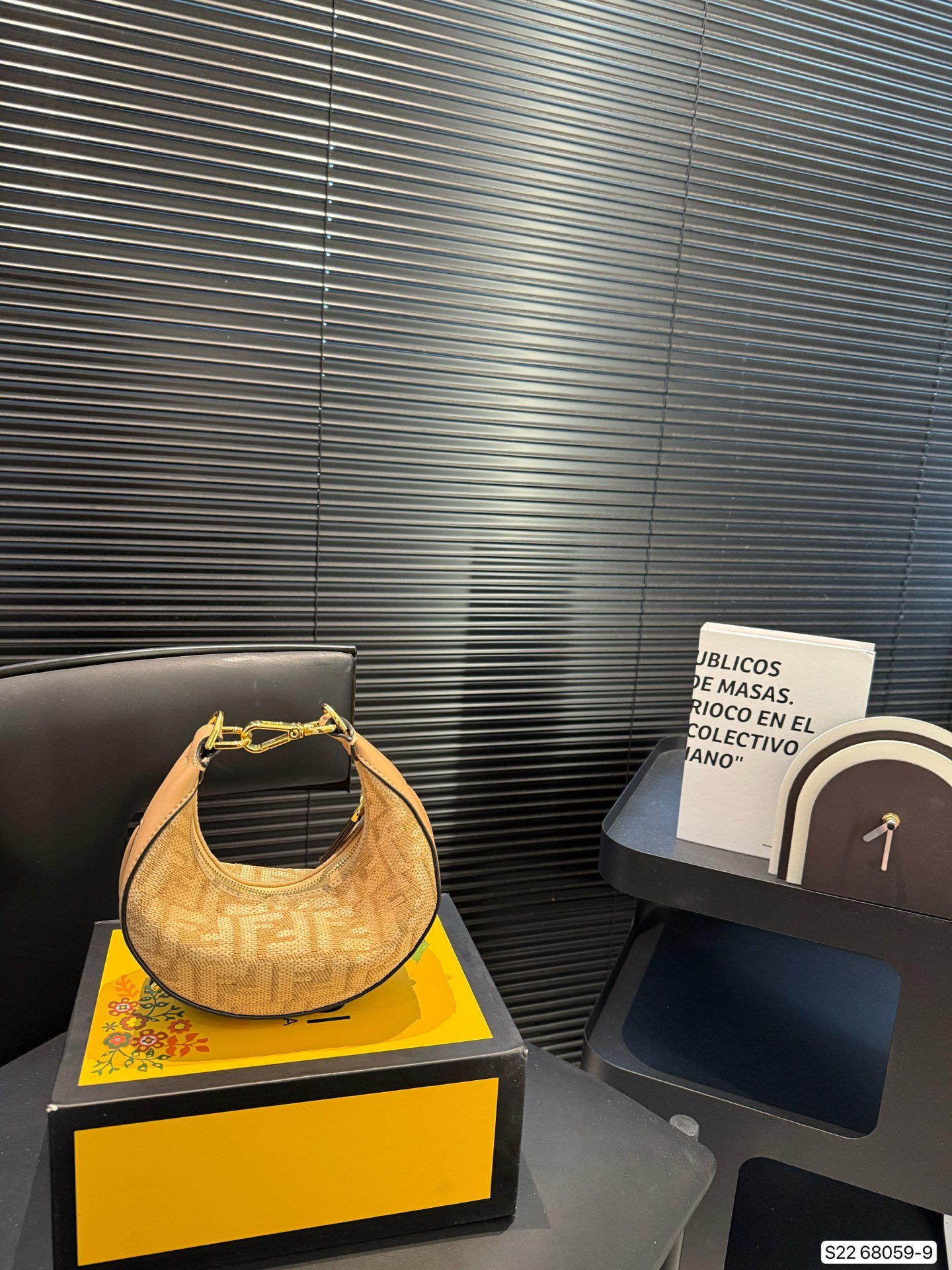 حقيبة كتف صغيرة أنيقة من Fendi بتصميم هلالي مميز، مصنوعة من قش منسوج بلون بيج طبيعي مع تطريز نقشة FF الأيقونية. تتميز الحقيبة بحواف وجلد بلون جملي دافئ، وحمالة يد قصيرة قابلة للإزالة باللون الذهبي اللامع، مما يضيف لمسة من الرقي. تعتبر هذه الحقيبة قطعة مثالية لإطلالة صيفية أنيقة وعصرية، وتناسب حمل الضروريات اليومية بأسلوب مميز.