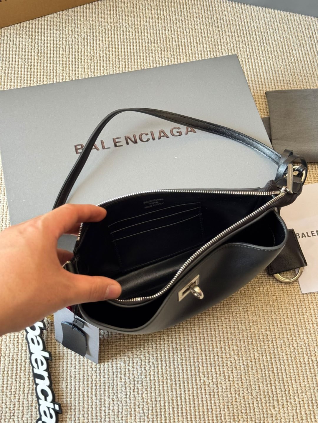 هذه الحقيبة من Balenciaga تجمع بين التصميم الأنيق والجودة الفاخرة، مما يجعلها قطعة استثنائية بكل المقاييس. إليك أبرز ميزاتها: