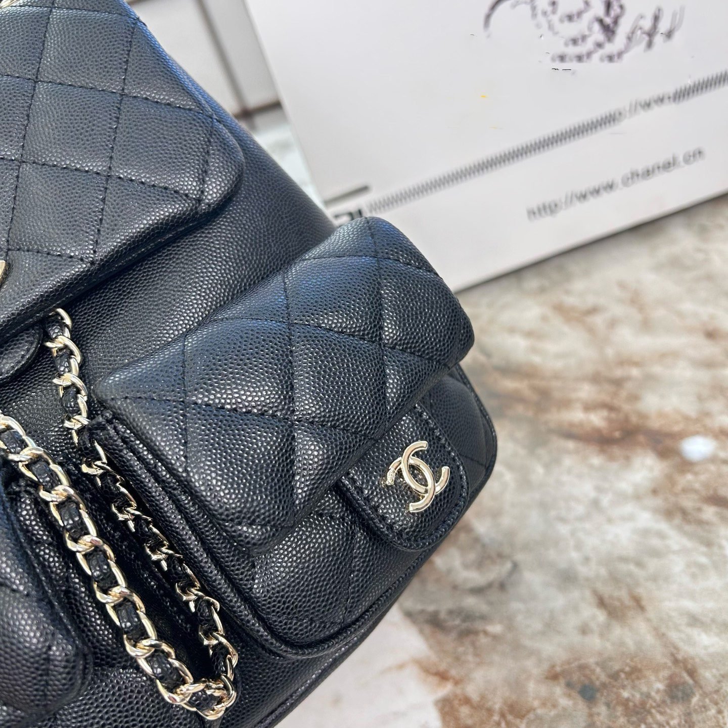 ملمسها فائق الفخامة، وجلد الكافيار ناعم ورقيق. مريحة للغاية، كلاسيكية ومتعددة الاستخدامات، يمكنكِ ارتداؤها بأي أسلوب، إنها حقيبة الظهر المثالية! تصميمها مستدير، رقيق وجميل. المقاس: ١٧*٢٠ سم.