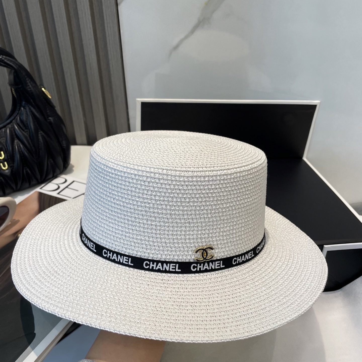 قبعة شانيل القشية الفاخرة ذات القمة المسطحة