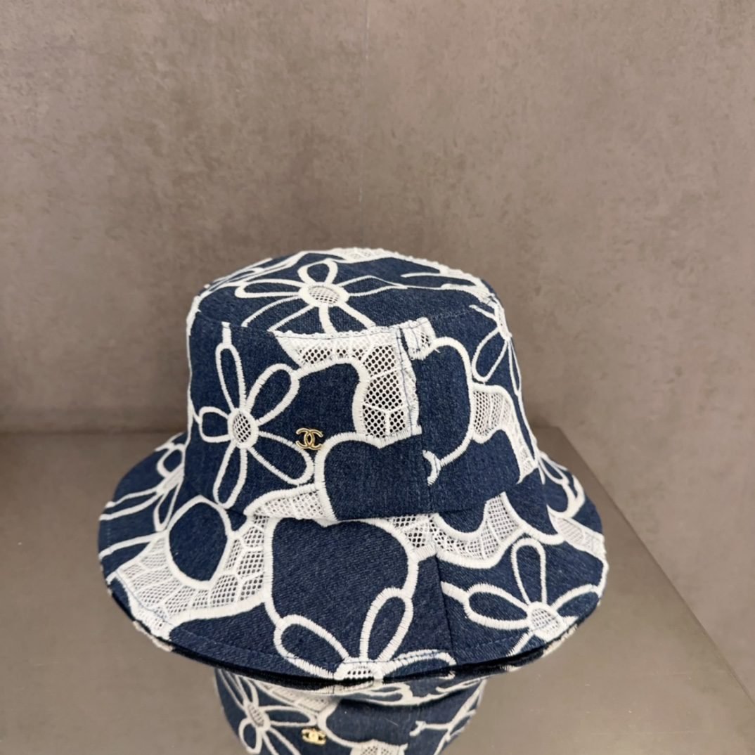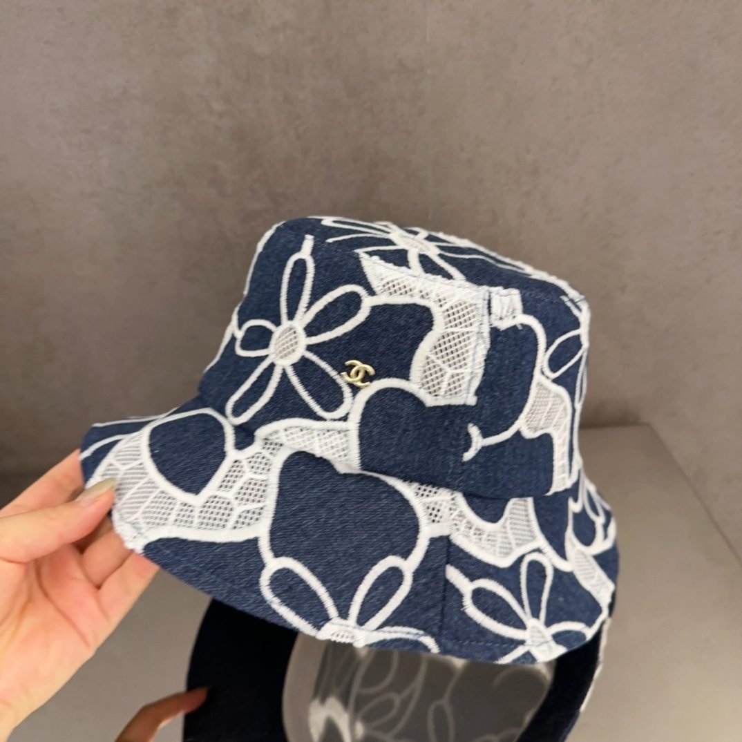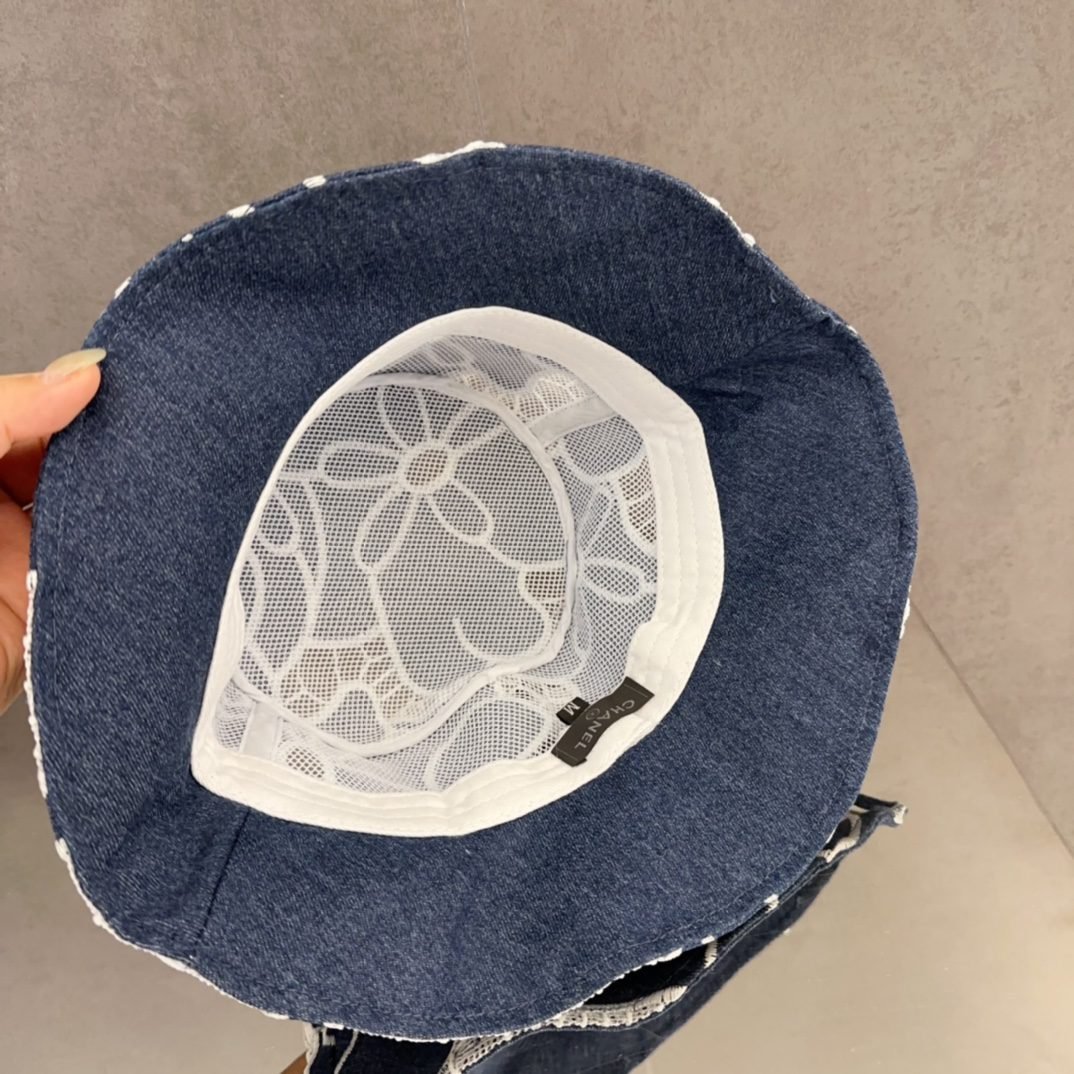قبعة دلو جديدة من شانيل، مصنوعة من قماش الدنيم الأزرق، بتصميم ريترو