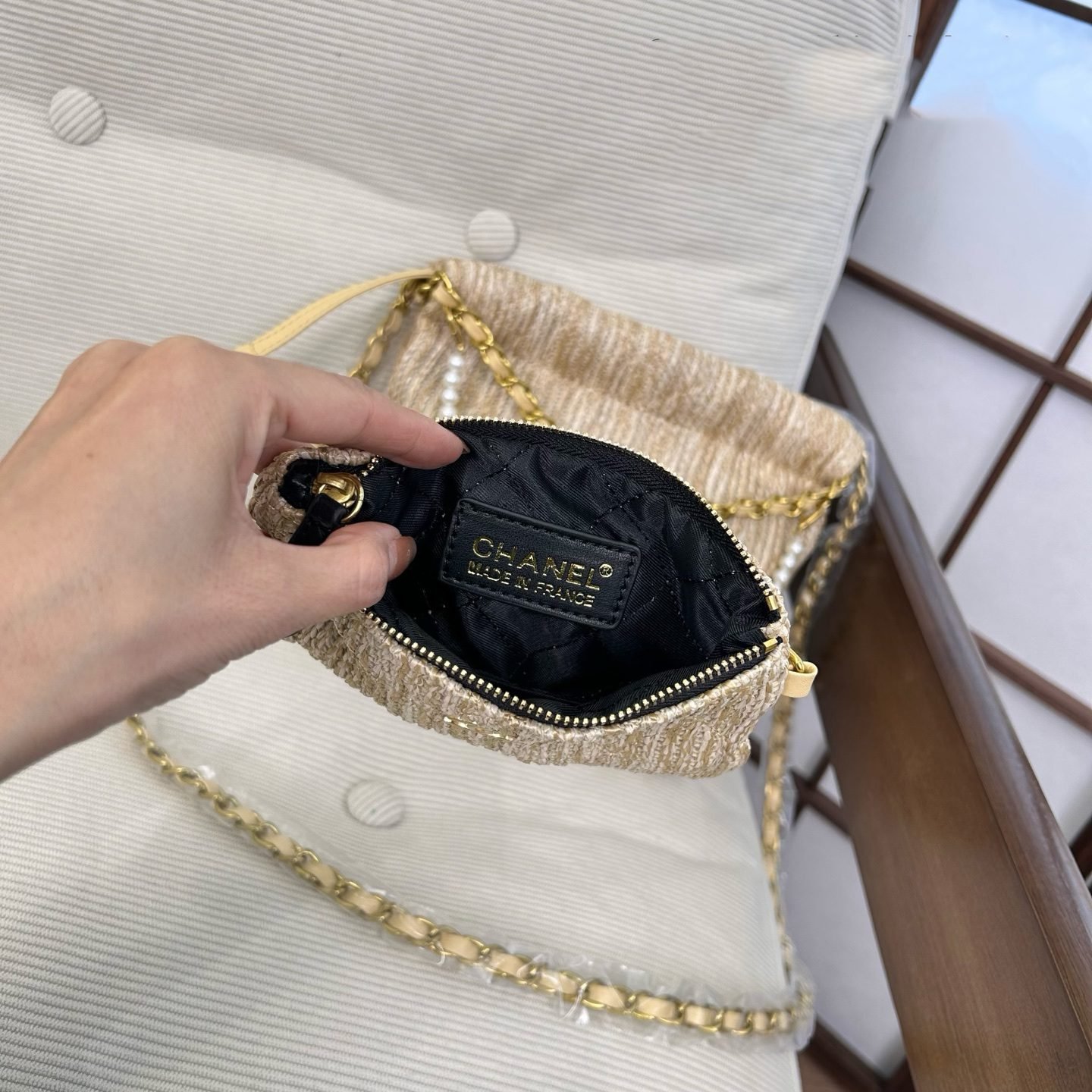 حقيبة شانيل المنسوجة باللؤلؤ