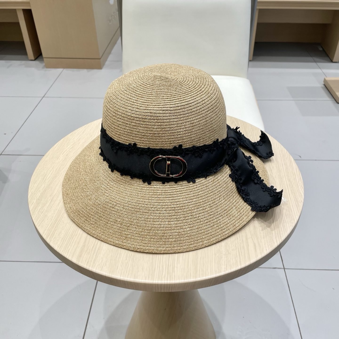 قبعة ديور القشية المسطحة