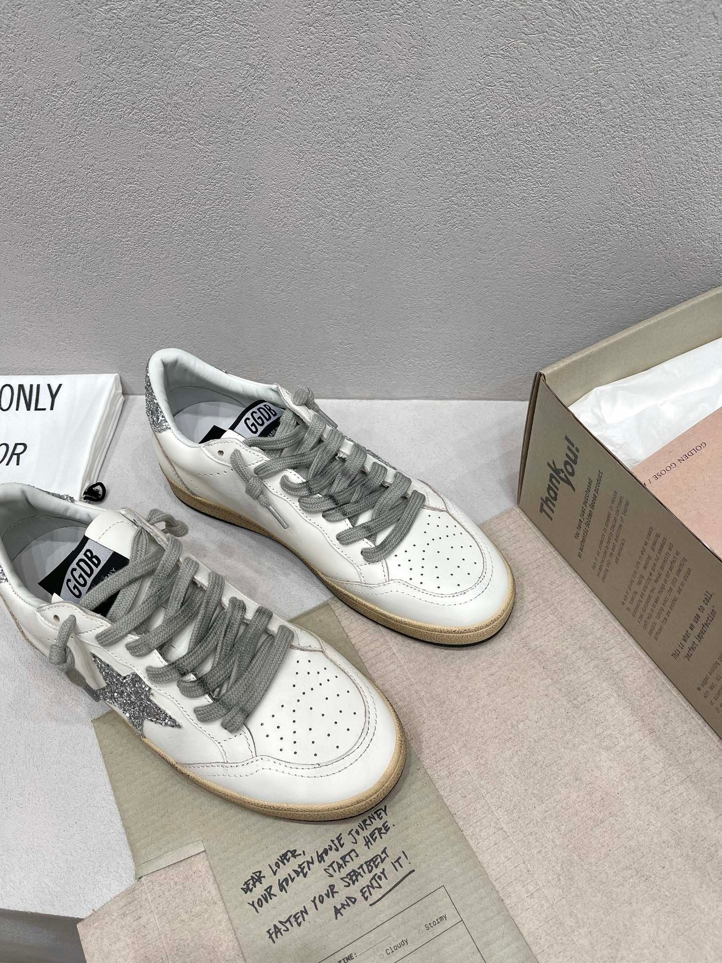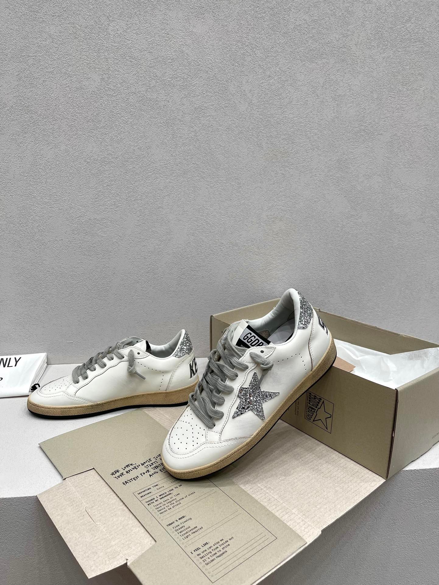 يزين جانبه شعار النجمة الشهير للماركة المغطى بالجليتر الفضي 🌟، وتأتي الأربطة بلون رمادي 🩶.