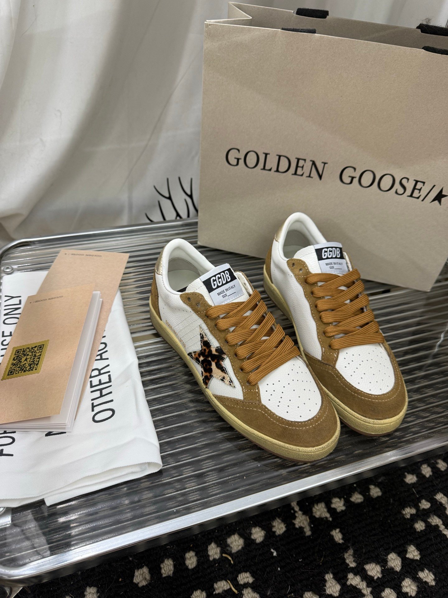 يبرز شعار النجمة الشهير للماركة بجلد بنقشة جلد الفهد 🐆، وتأتي الأربطة باللون البني 👞.