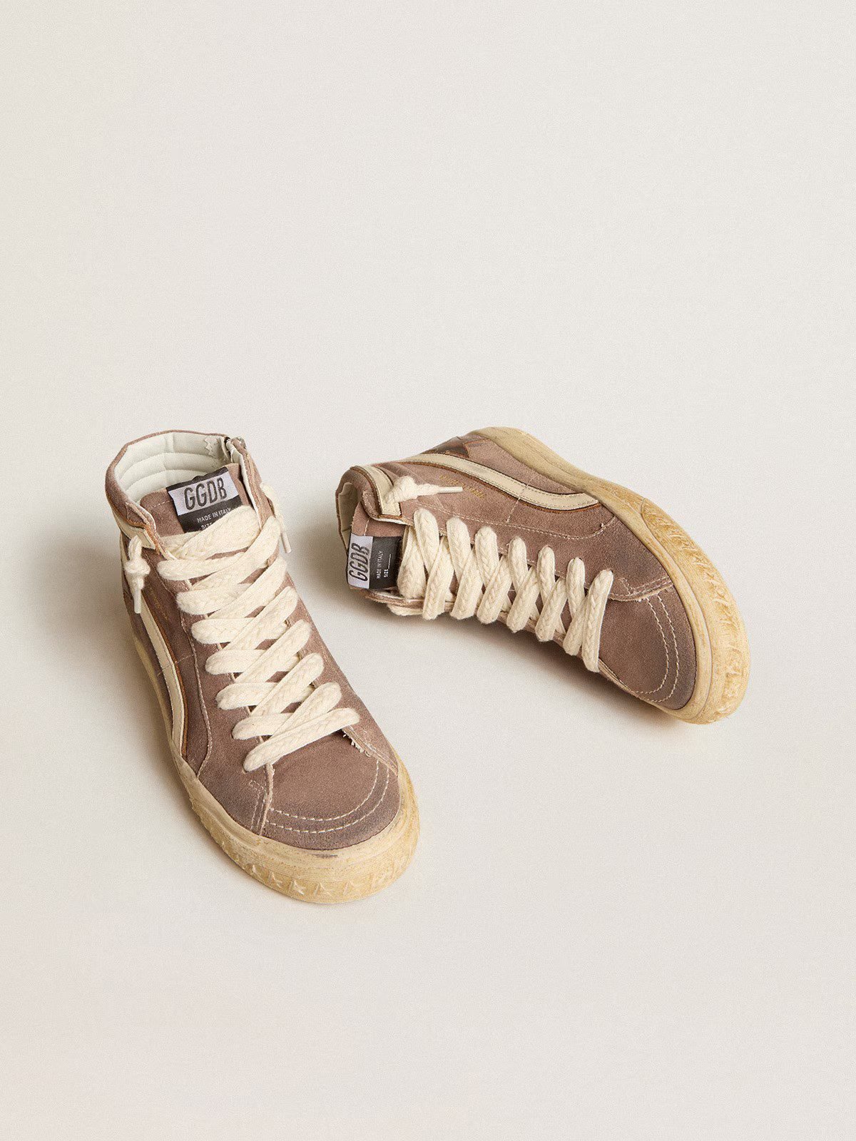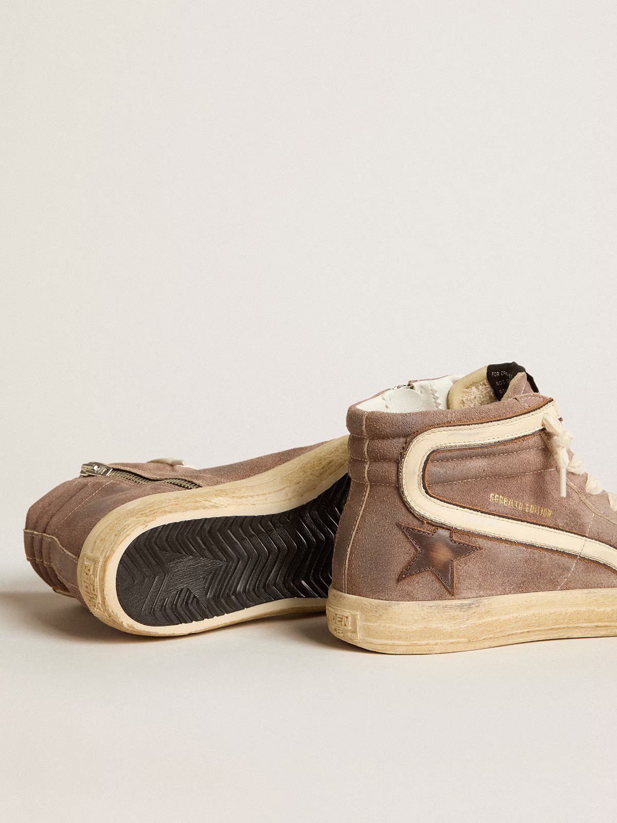 هذا الحذاء الرياضي عالي الرقبة بتصميمه الأنيق ولونه البني الفاتح يجسد مزيجًا رائعًا بين العصرية والراحة.