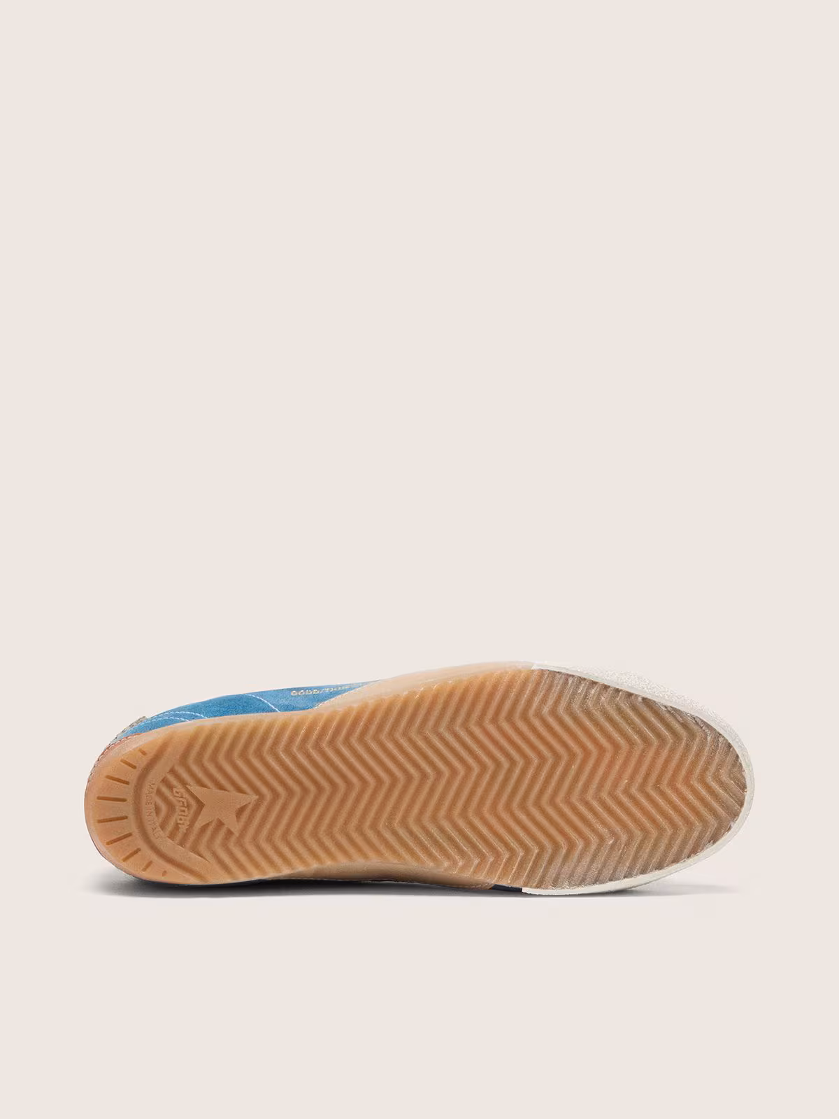 أما النعل المطاطي، فيأتي باللون البيج الدافئ ليخلق توازناً مثالياً مع اللون الأزرق العميق.