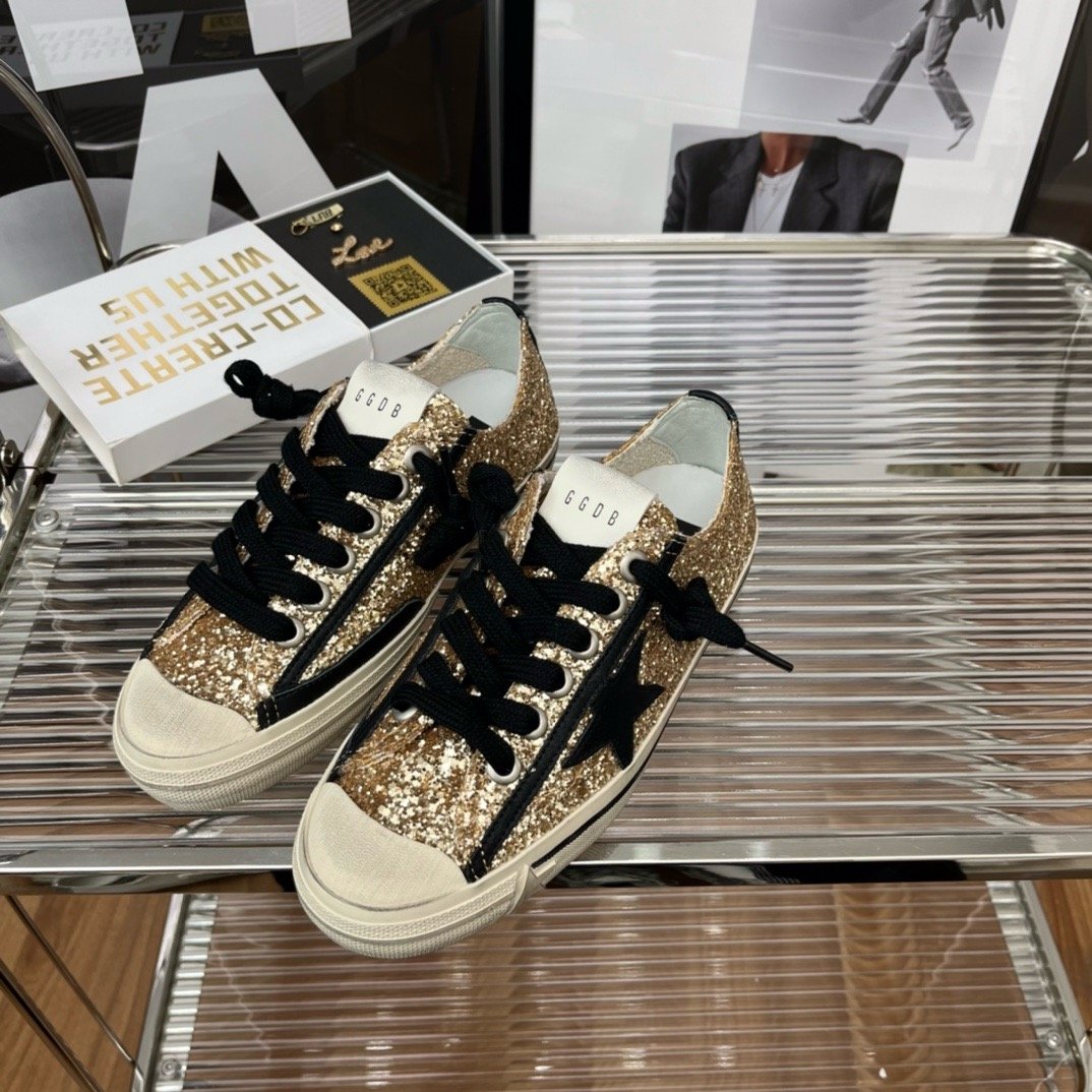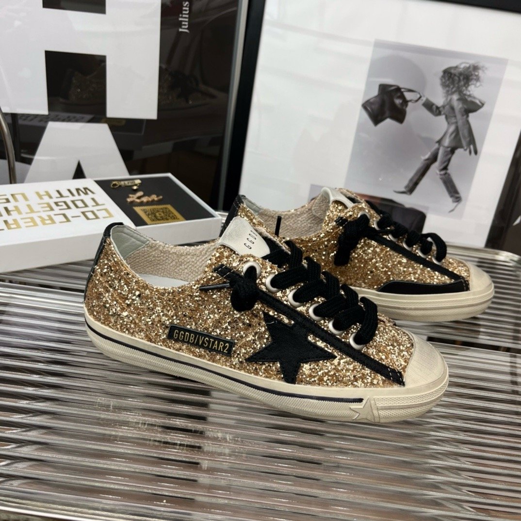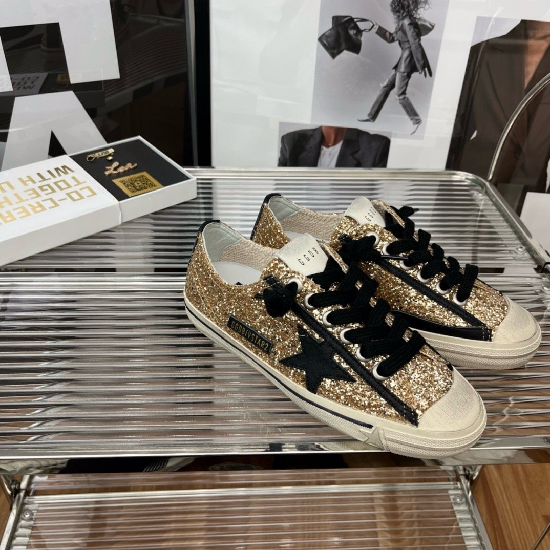 أضف لمسة من الفخامة والتألق إلى إطلالتك مع حذاء Golden Goose V-Star.