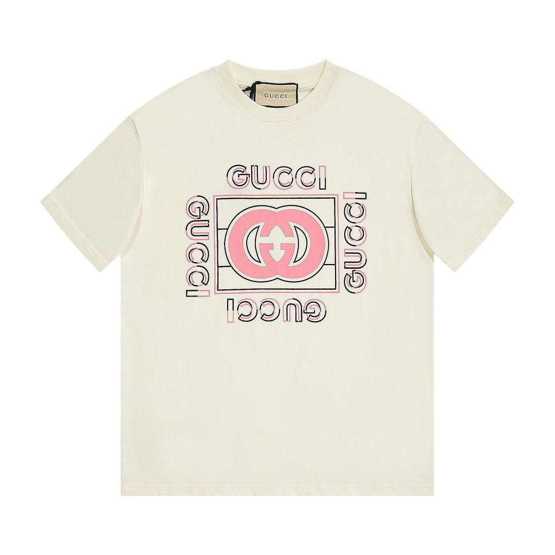 تيشيرت غوتشي الجديد باللون الوردي بأكمام قصيرة وشعار G المزدوج.