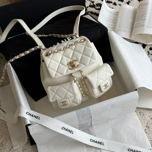 حقيبة ظهر ميو ميو الجديدة، ٢٧ × ٣١ سم. كشفت ميو ميو، التي تُعدّ رائدة في صيحات حقائب اليد كل عام، عن تصميم حقيبة الظهر هذا الموسم. صُنعت من قماش قماشي مع جيوب أنيقة لمزيد من العملية. ستعود حقائب الظهر بتصميم ميو إلى الواجهة من جديد، وهي رائجة على الإنترنت. المقاس: ٢٧ × ٣١ سم.