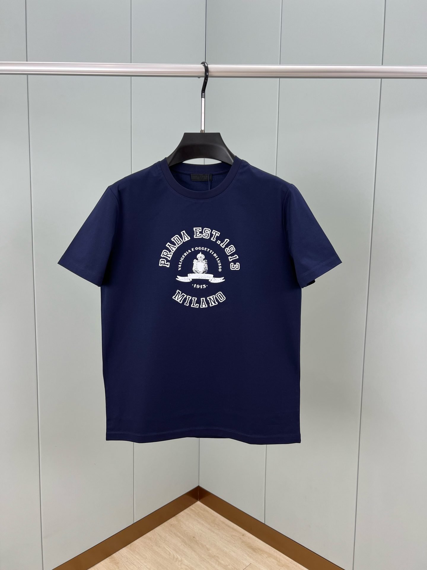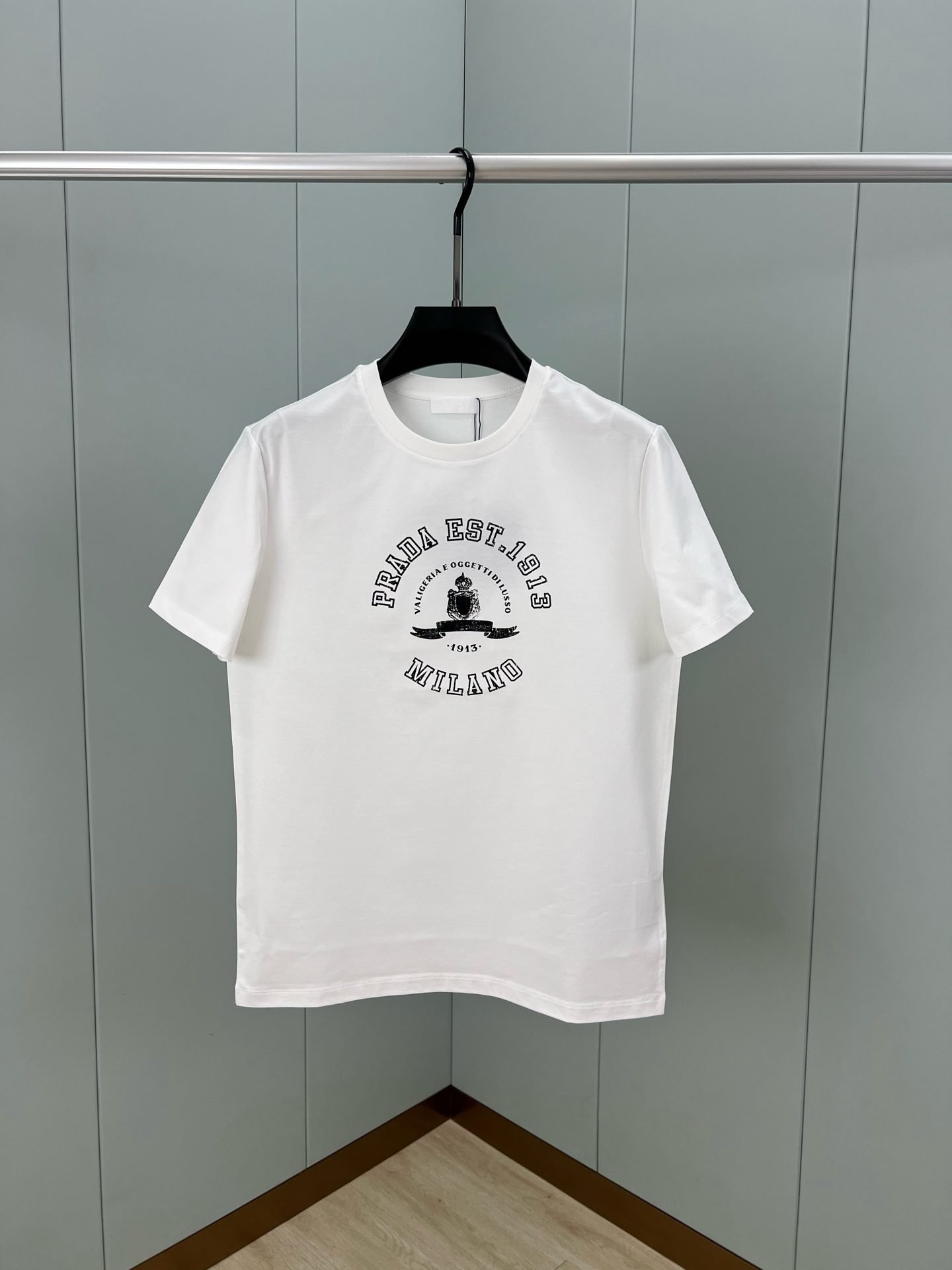 تي شيرت برادا الجديد للربيع والصيف بأكمام قصيرة مطبوع عليه شعار الحروف القديمة مصنوع من قماش قطني مزدوج الخيوط؛ أسود، أبيض، أزرق ملكي S~XXXL