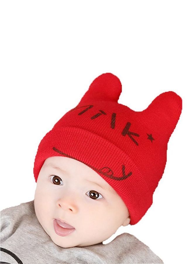 قبعة محبوكة مطبوعة أحمر