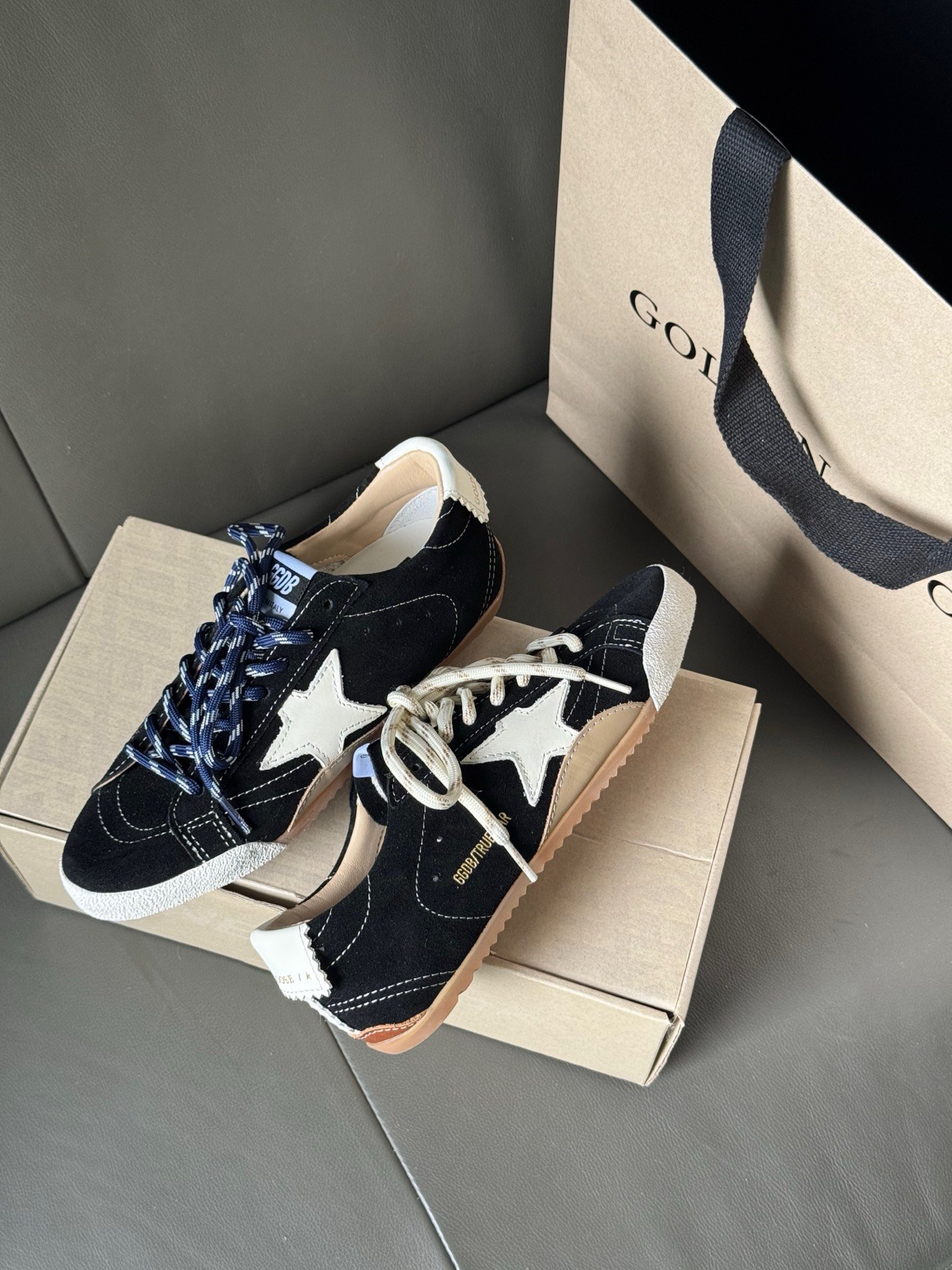 حذاء Golden Goose Super-Star, باللون الأسود الفاخر،