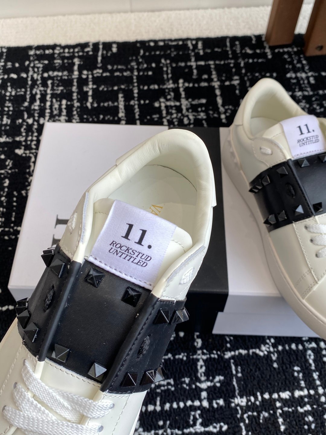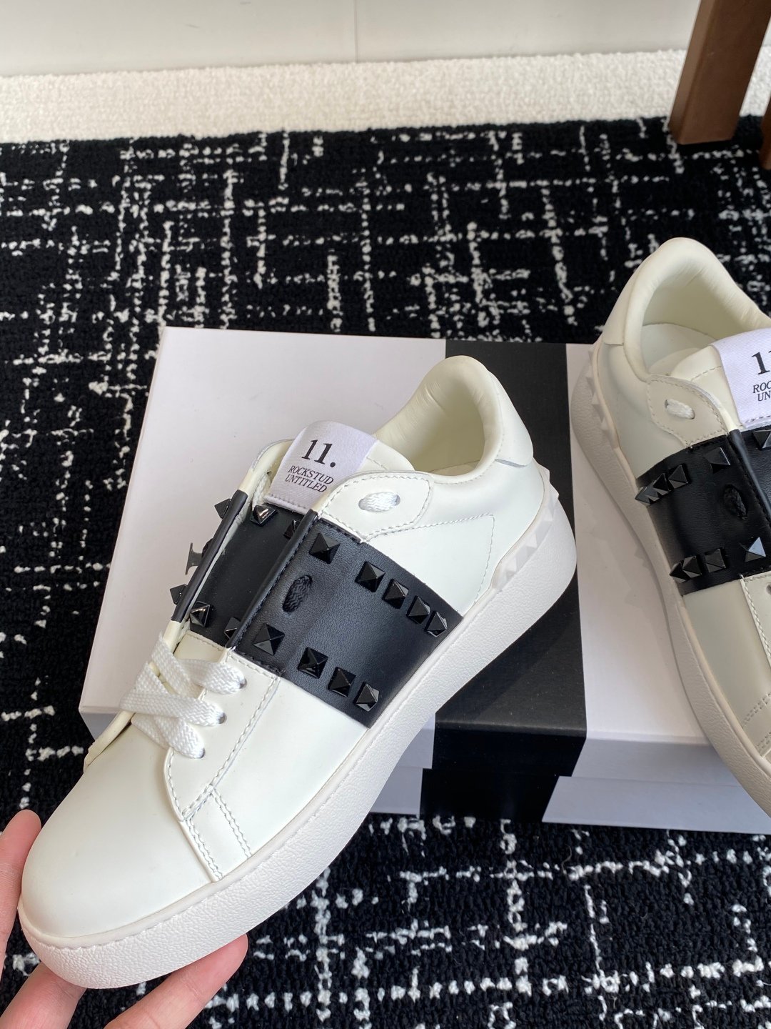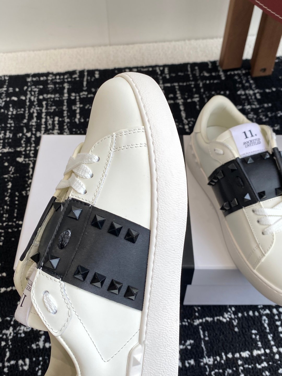 حذاء Valentino Garavani Sneaker: أناقة جريئة بمسامير الروك المميزة! 🖤✨