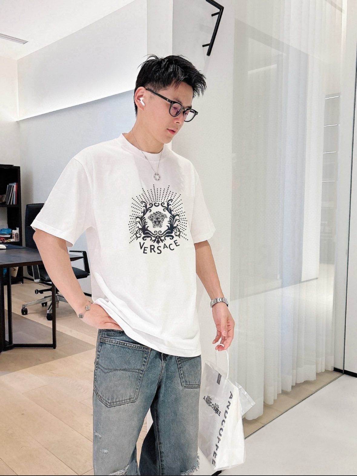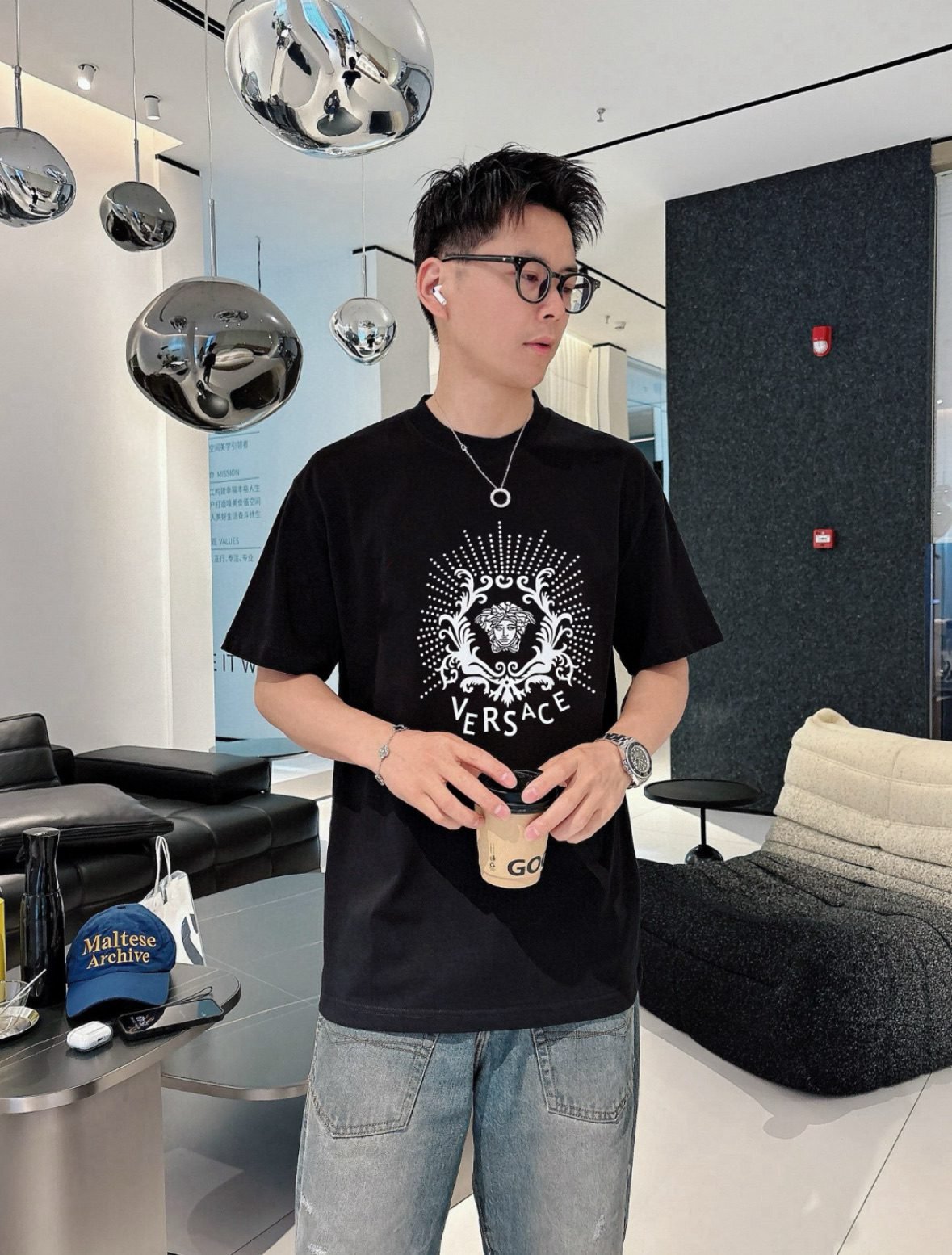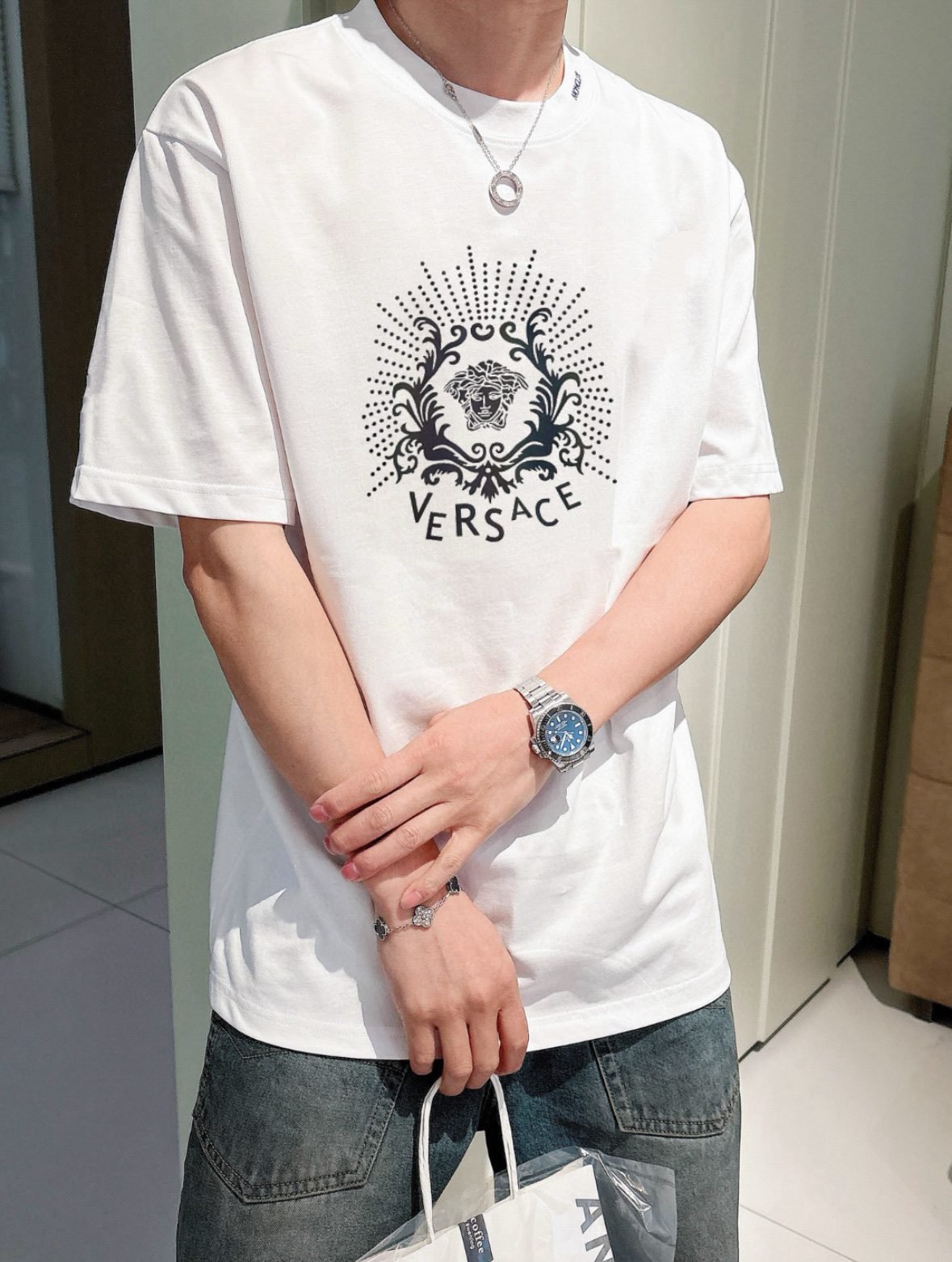 تيشيرت فيرساتشي الجديد من القطن بياقة دائرية وأكمام قصيرة. منتج جيد، لا يحتاج إلى شرح مُفصل. انظر التفاصيل. المقاس: M-XXXL.