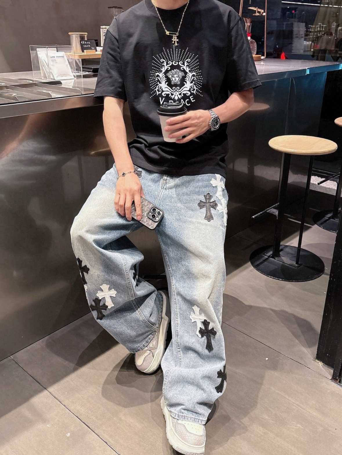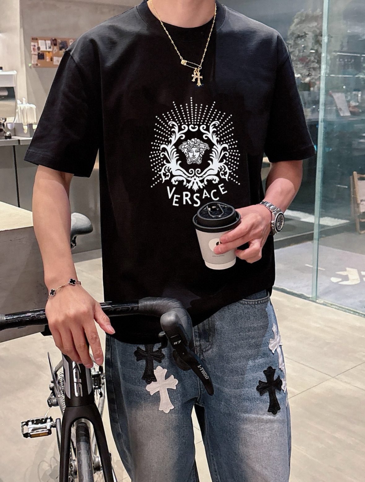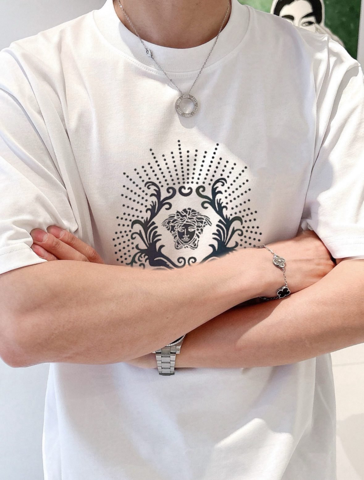 تيشيرت فيرساتشي الجديد من القطن بياقة دائرية وأكمام قصيرة. منتج جيد، لا يحتاج إلى شرح مُفصل. انظر التفاصيل. المقاس: M-XXXL.