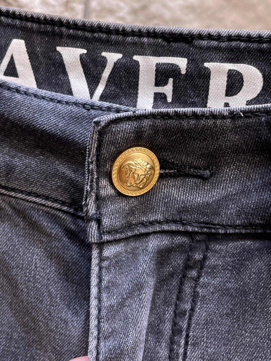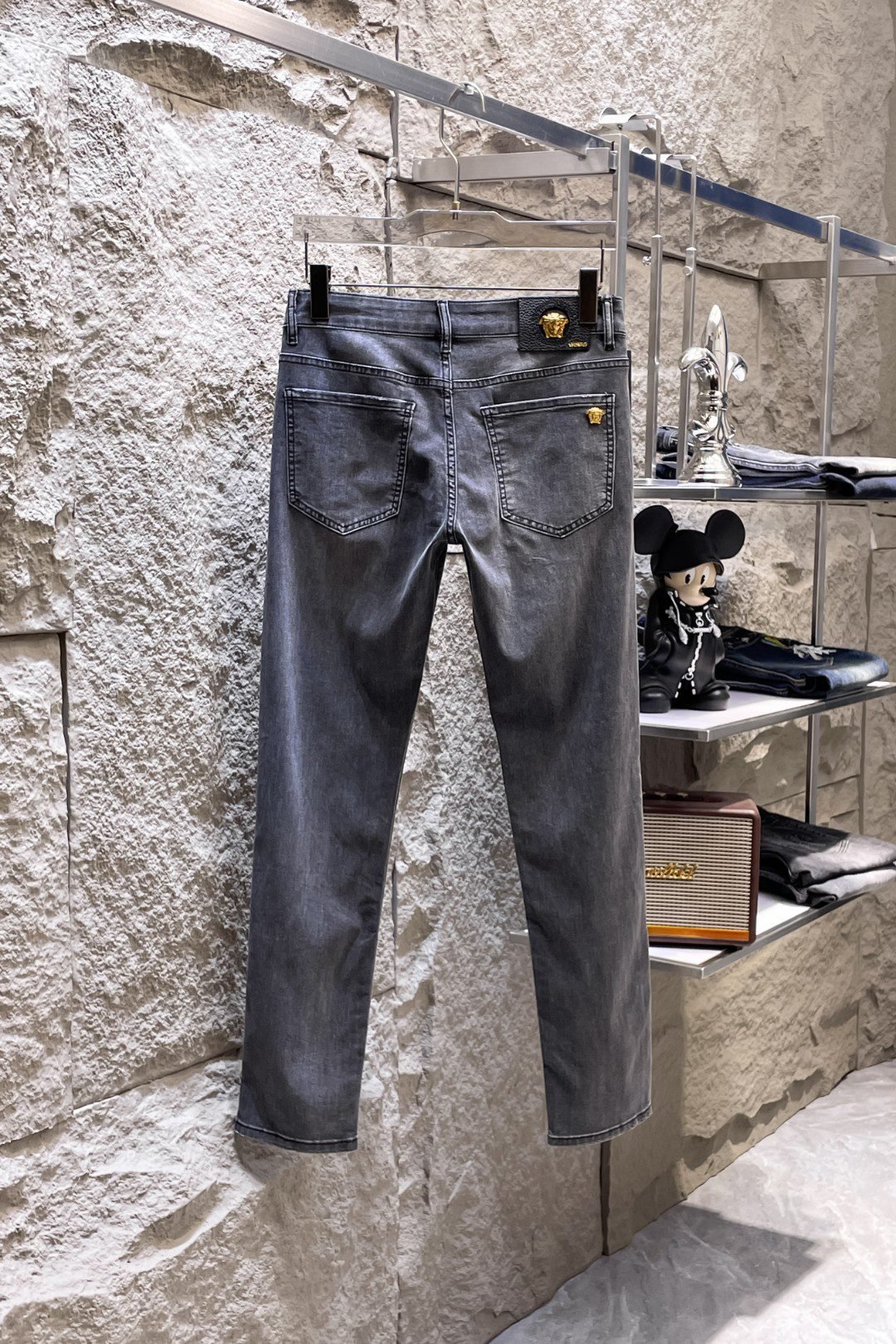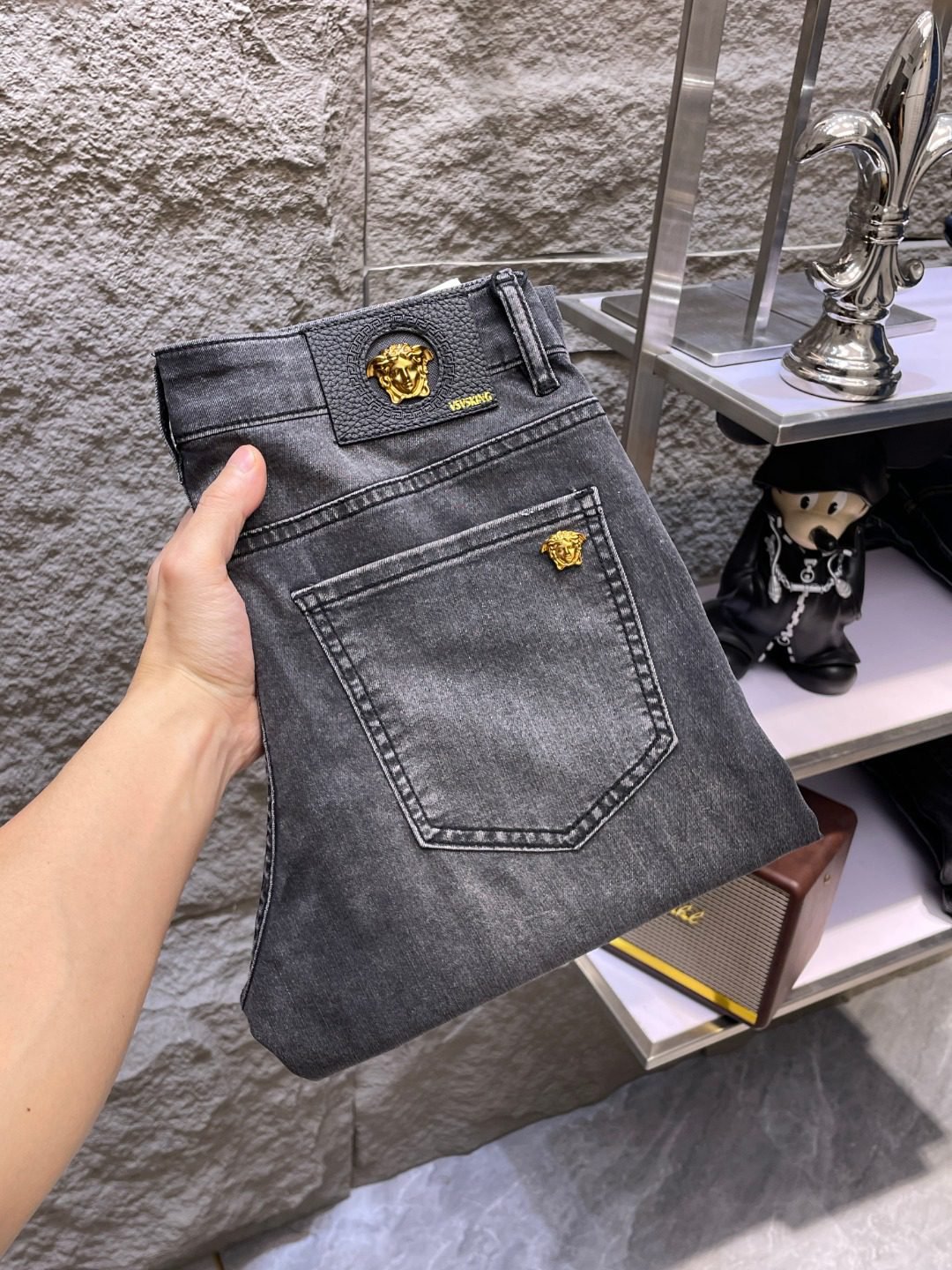 بنطلون جينز رجالي جديد من VERSACE للربيع والصيف، قماش جينز مختار، ملمس ناعم، مقاوم للتآكل، إصدار مستقيم صغير، مرن قليلاً، نحيف ورفيع، تفاصيل مثالية، صنعة جيدة، المقاس: 28-38