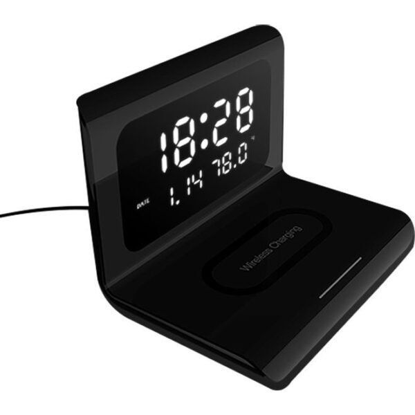 ساعة منبه رقمية مع شحن لاسلكي LED لعرض الوقت ودرجة الحرارة