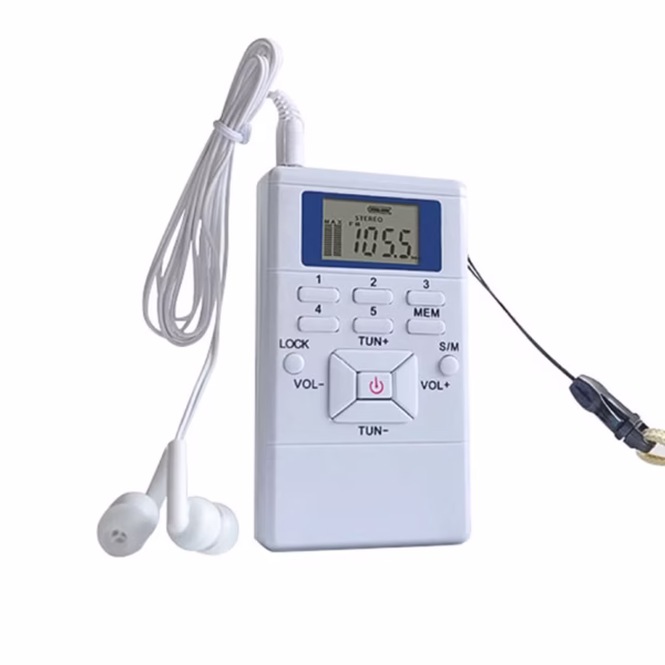 جهاز استقبال راديو FM ستيريو صغير محمول مع سماعة أذن